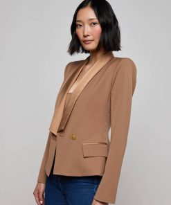 L’agence Women’s Jennah Jacquard Blazer | Neutral Crinkle Twill