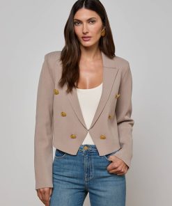 L’agence Women’s Elio Cropped Knit Blazer | Pale Khaki & Gold