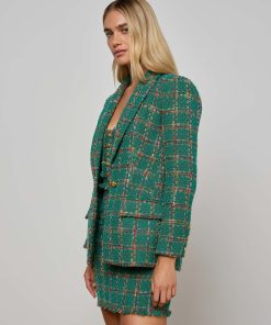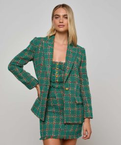 L’agence Women’s Gweny Tweed Blazer | Green Windowpane Tweed