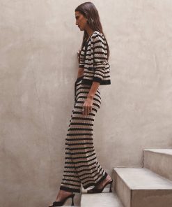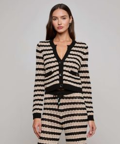 L’agence Women’s Orla Pointelle Knit Cardigan | Black & Natural Stripe