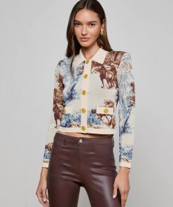 L’agence Women’s Osiris Jacquard Cardigan | Tan Multi Western Toile