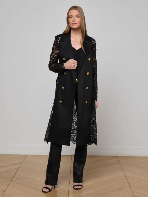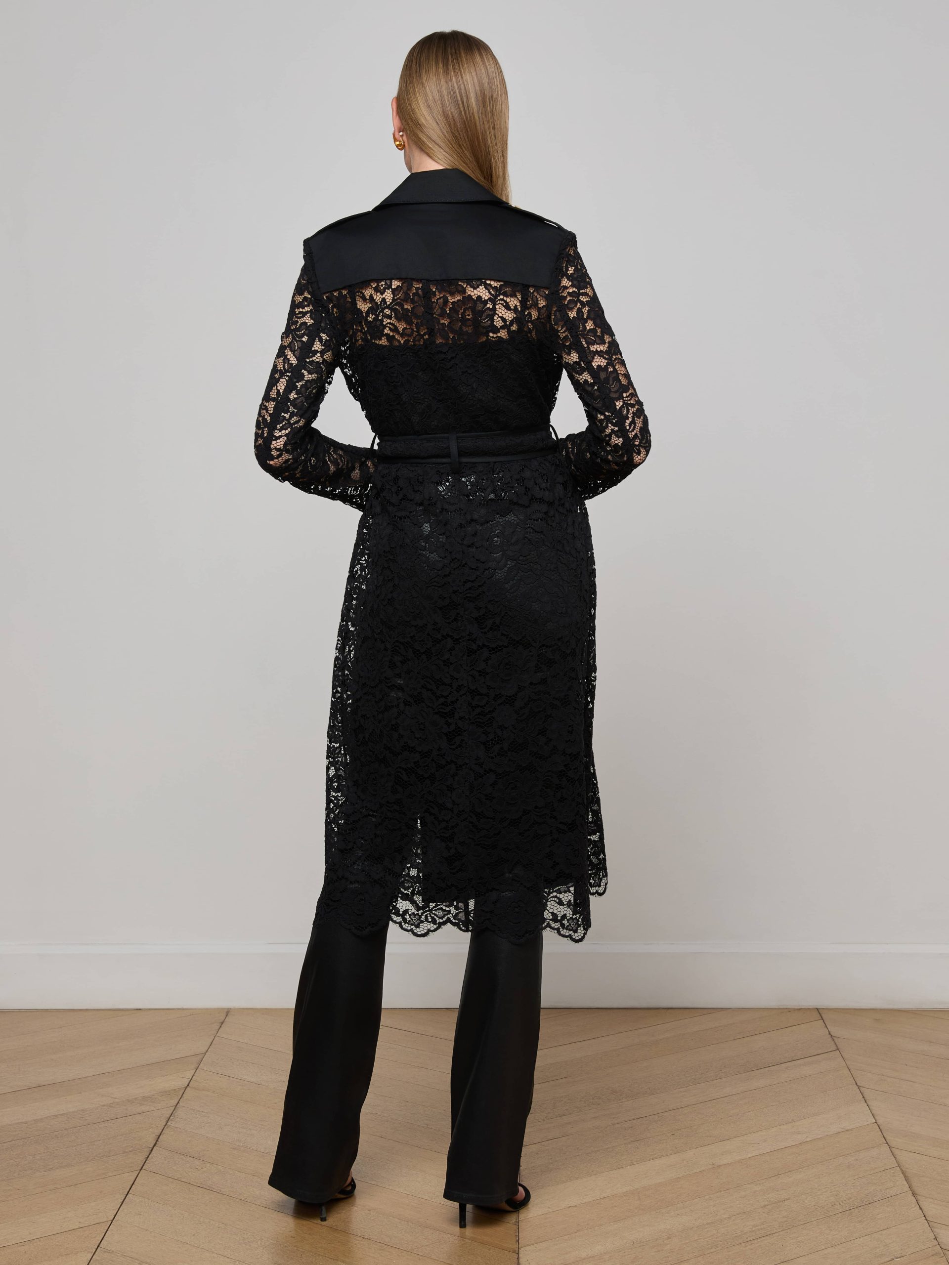 The Amata debuted at the Fall ‘25 NYFW presentation. This sheer lace trench coat puts a feminine spin on a classic, blending timeless tailoring with romantic details. The ultimate statement layer.