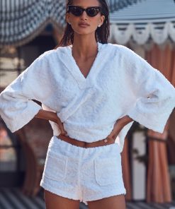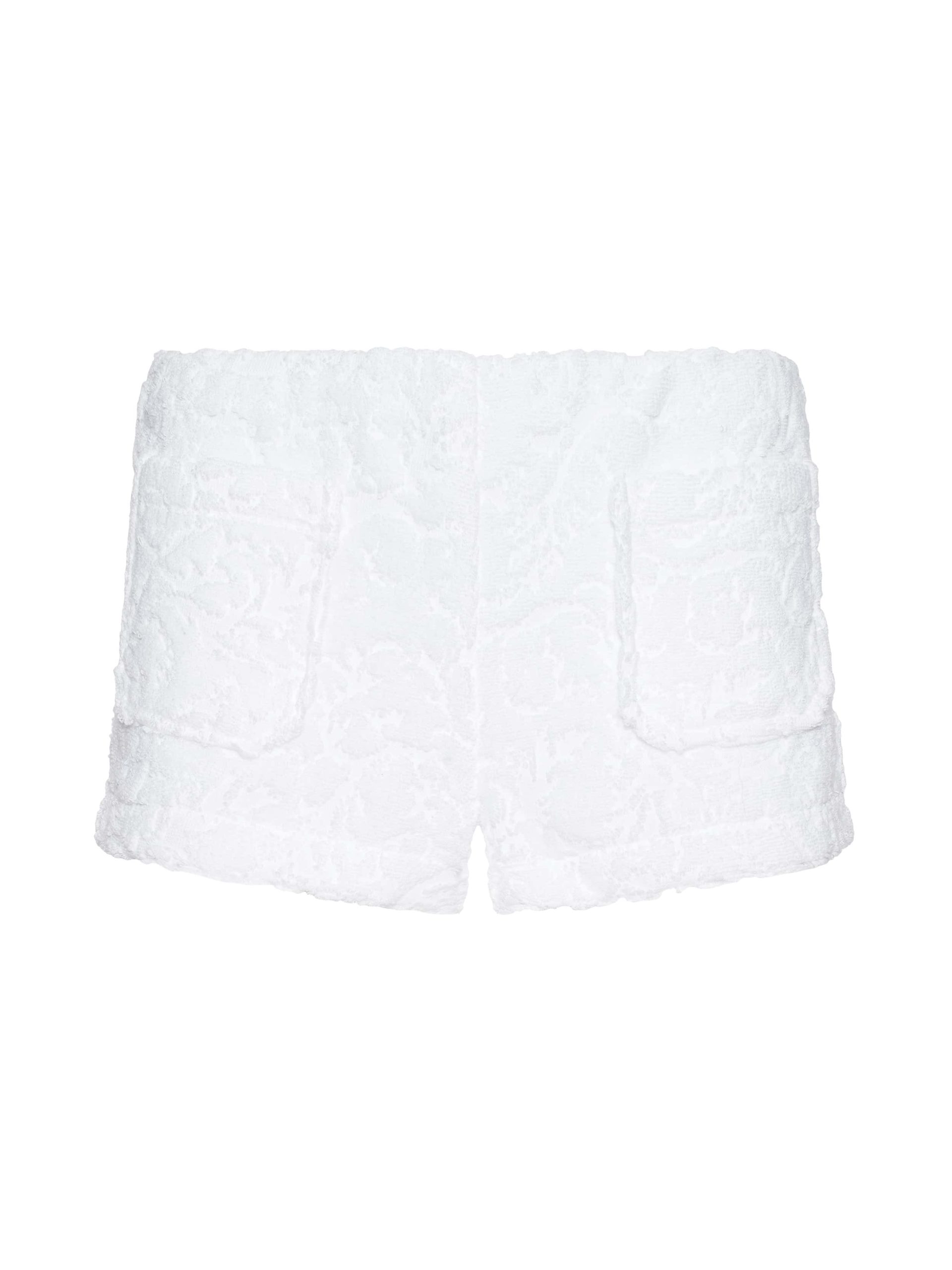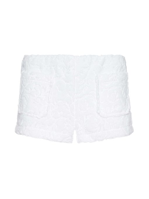 The Amiya hot short brings playful polish to your warm-weather wardrobe. Cut in ornate white terrycloth with front pockets and a cheeky, leg-lengthening fit, it’s the perfect throw-on for poolside lounging and resort strolls.