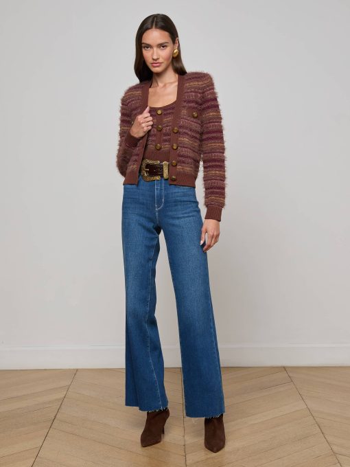 Soft and striking, the Ariadne is woven with a variety of eyelash yarns and mixed stitches for textural dimension. Finished with vintage-inspired buttons. Wear the Ariadne as a top or layer it over the coordinating Galene tank.