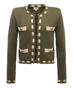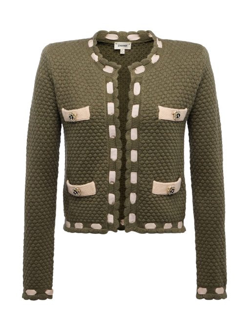 Parisian-inspired elegance at its finest. The Astor cardigan is back in olive green.