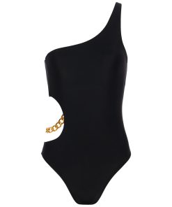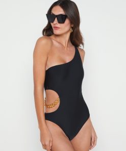 She’s a stunning statement piece guaranteed to turn heads. Featuring a removable chain, the Ava is designed for form and function. This one-piece flatteringly sculpts curves with a single side cutout, hidden underwire construction for enhanced curve definition, and an extra layer of lining that provides additional support. In a four-way stretch nylon that creates a smooth silhouette, she offers moderate coverage for complete freedom of movement. Style tip: wear it with low-rise trousers as an unexpected bodysuit. Style No. LG4MJ01-BLAC