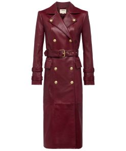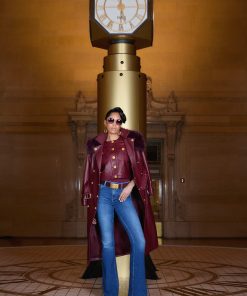 This style debuted at the Fall ‘25 NYFW presentation. The Celina is crafted from a supple, fine-grain leather dyed a beautiful shade of black cherry. This leather trench coat is a timeless, showstopping closet hero to treasure year after year.