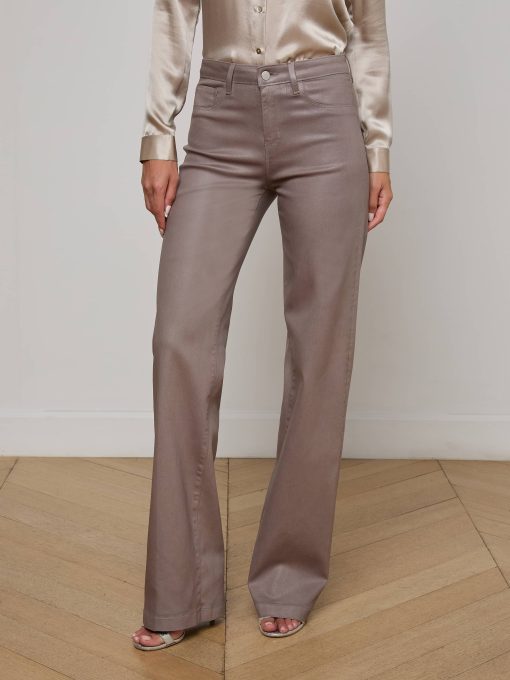 Clayton is our tall wide-leg pant, featuring a flattering, slim fit through the hips and a contoured waistband that sits securely at the natural waist without gaping. Now back in taupe leather-look coated denim.
