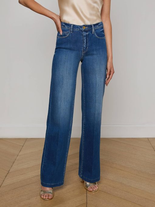 A polished wide-leg jean, fitted and flattering through the hips. Constructed with a contoured waistband that hugs the natural waist without gaping, the Clayton is also our longest inseam wide-leg jean. Now in a deep, classic wash.