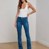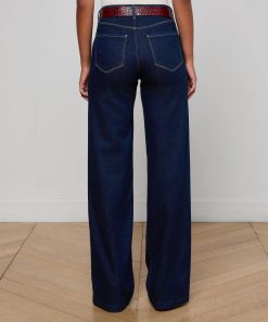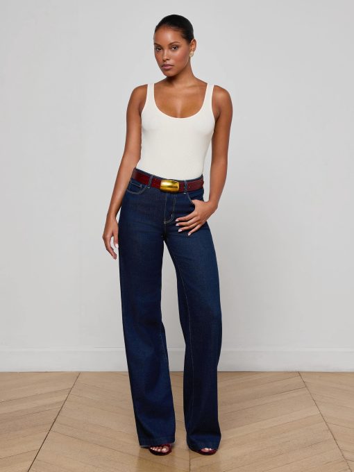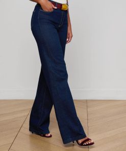 A polished wide-leg jean, fitted and flattering through the hips. Constructed with a contoured waistband that hugs the natural waist without gaping, the Clayton is also our longest inseam wide-leg jean. Now in a clean dark wash.