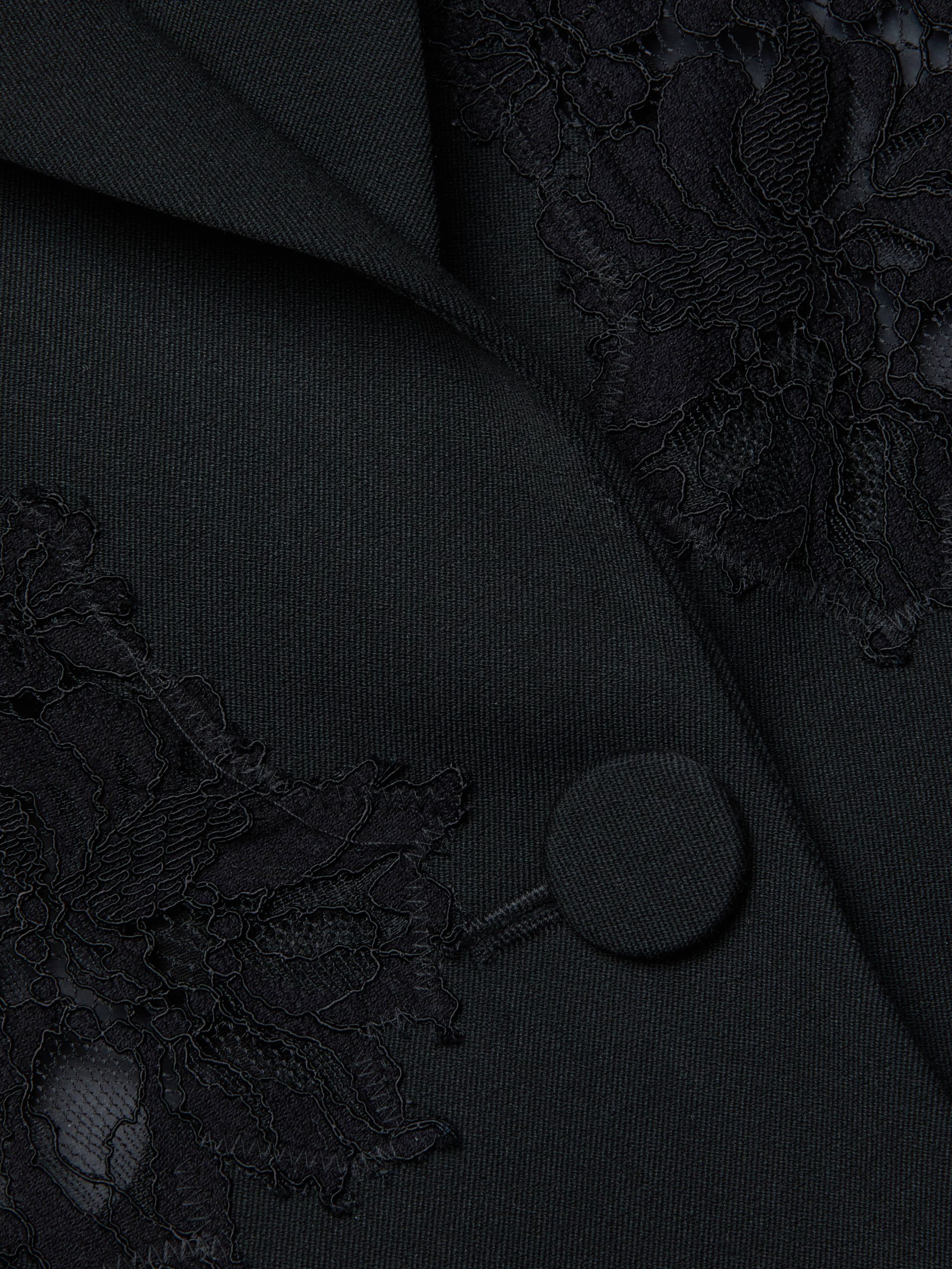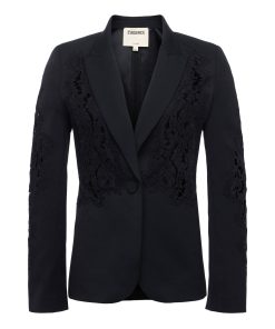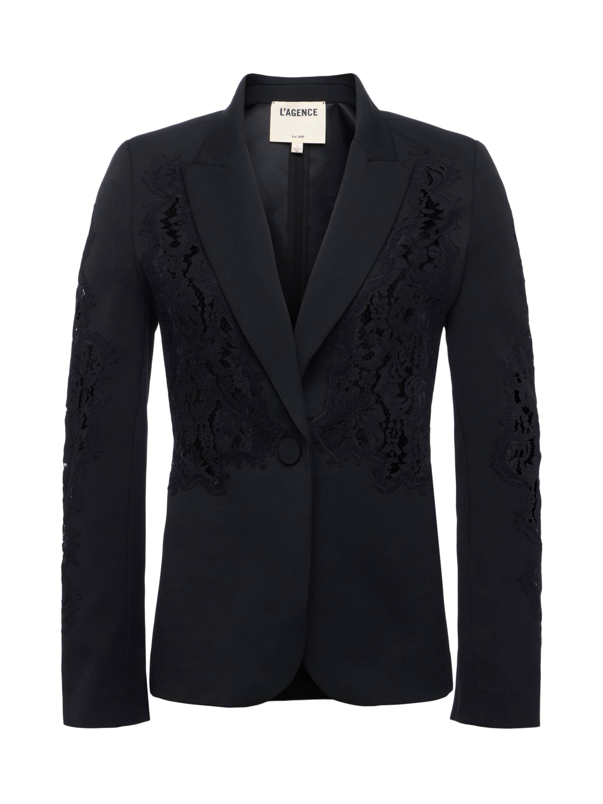 The Clementine blazer brings a romantic edge to tailored dressing with sheer lace insets accentuating the waist and sleeves, contrasting our classic two-stretch suiting fabric. The sleek, feminine cut transforms the piece into a striking evening suit when paired with the coordinating pant. A fresh take on party dressing—elegant, confident, and distinctly chic.