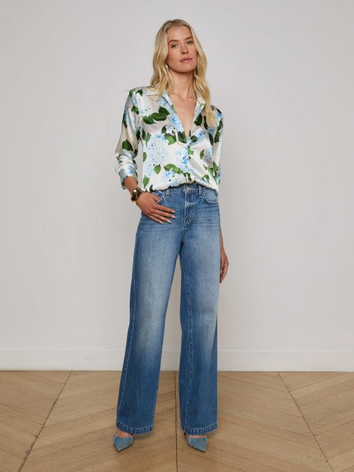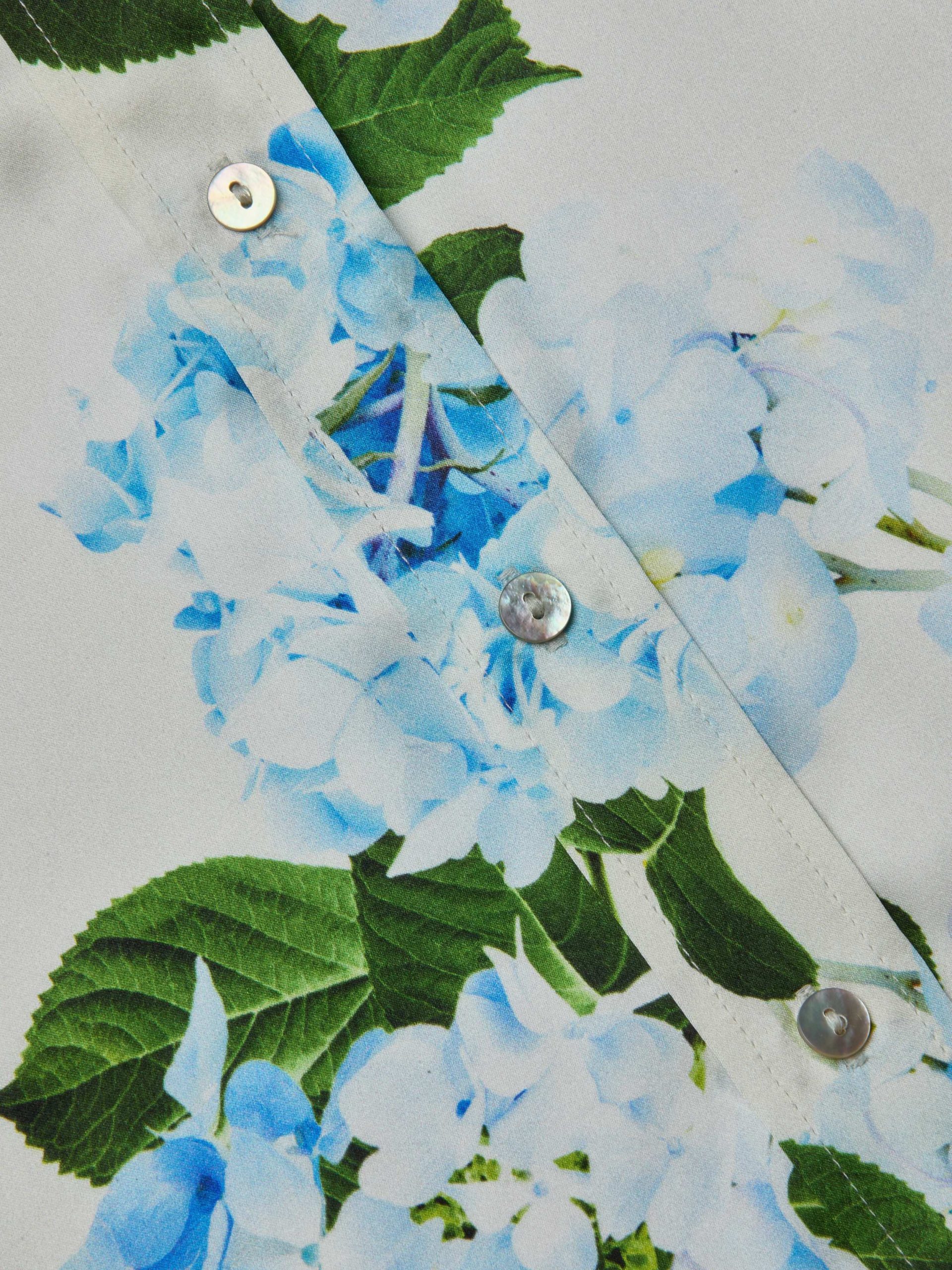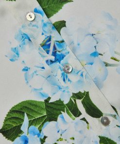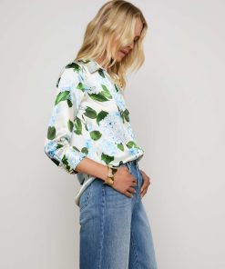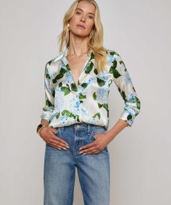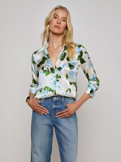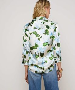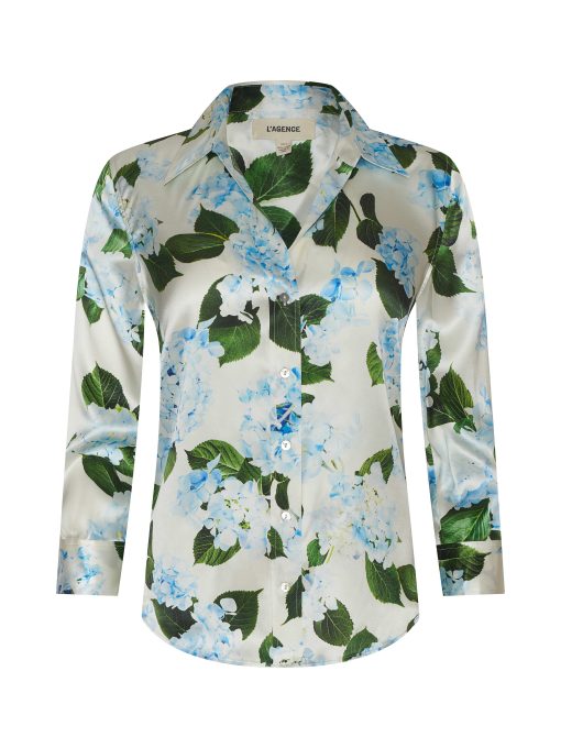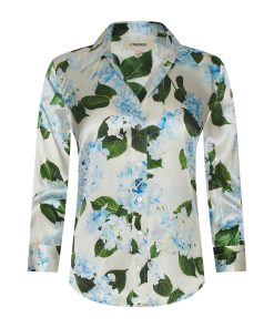 Meet the iconic silk button-down that belongs in every wardrobe. Our signature three-quarter sleeve shirt is back in a whimsical hydrangea print.