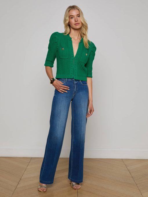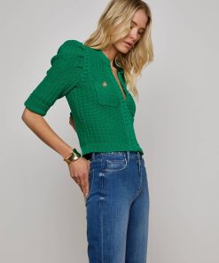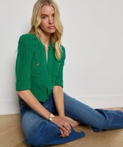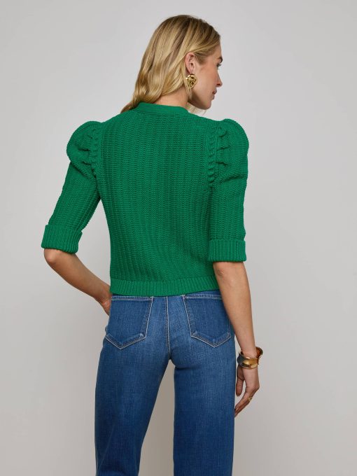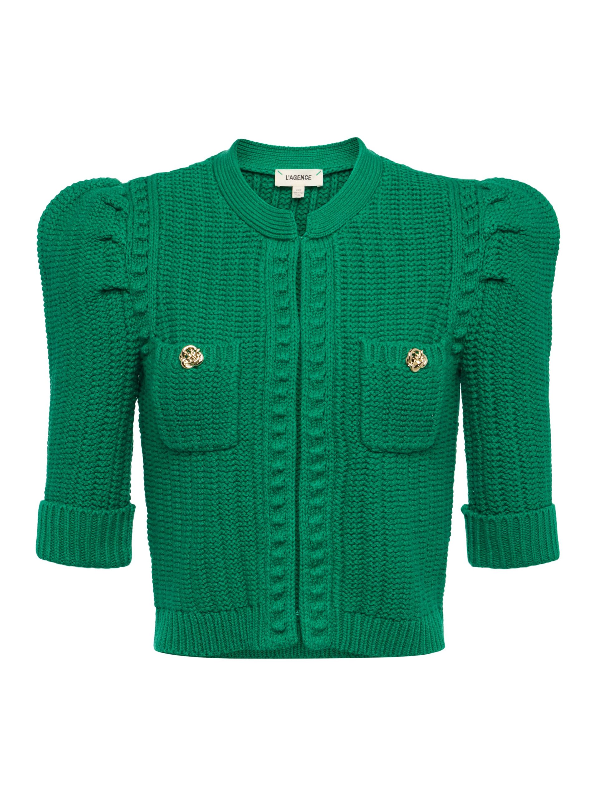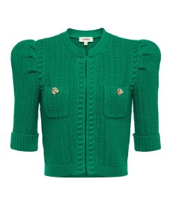 Texture and shape define the Delilah, now back in kelly green. Constructed with a structured knit and puff sleeves, this cardigan can be worn as top or second layer all season, every season.