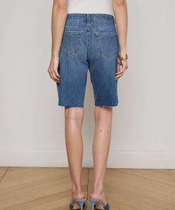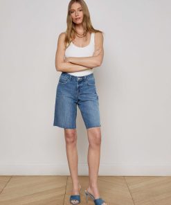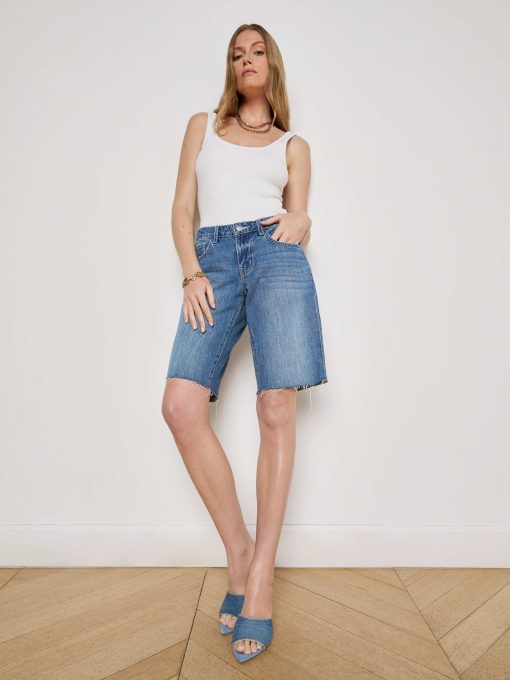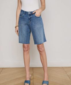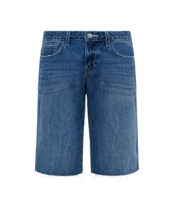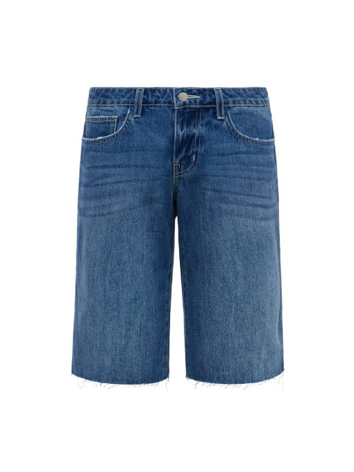 Your coolest Bermuda denim short is the low-rise Elise. This style sits at the hip and features a relaxed fit that hits just above the knee. Now in a medium wash.
