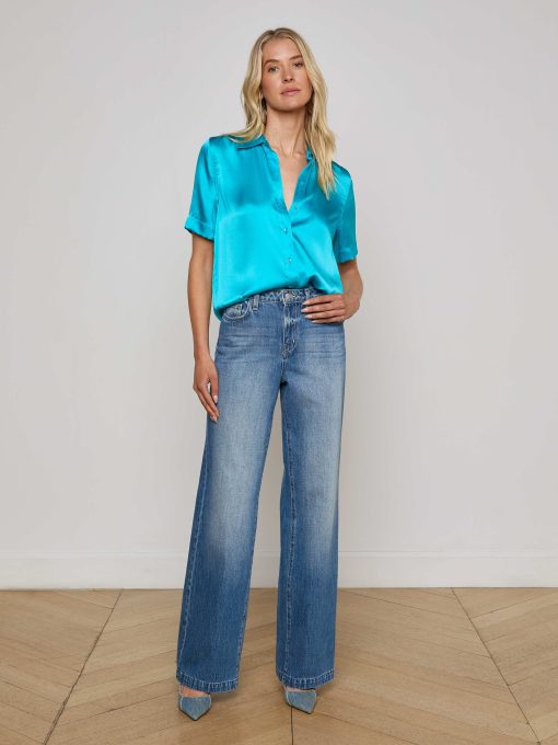 L’agence Women’s Ellah Silk Blouse | Bright Aqua