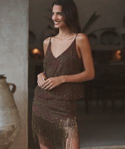 Intricately crafted with a mix of machine and hand-beading, each Eulla skirt requires over 21 hours to complete. Tiers of beaded fringe add sultry movement and a 1920s glamour.