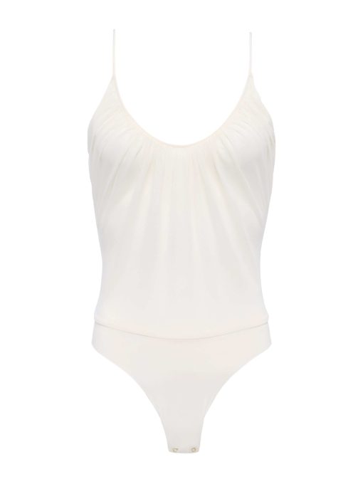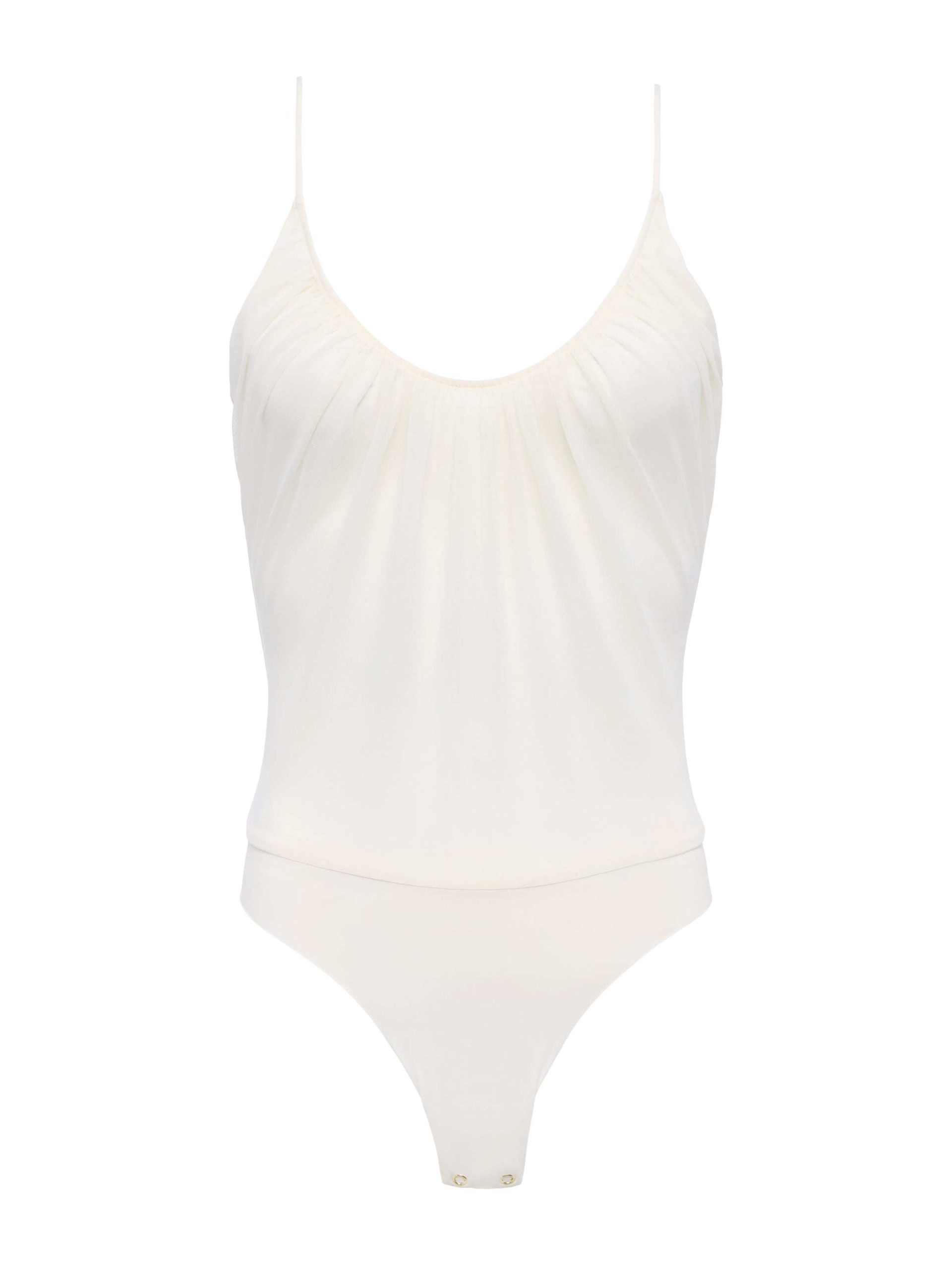 This subtly sexy bodysuit belongs in your wardrobe for all four seasons. Now in vintage white.