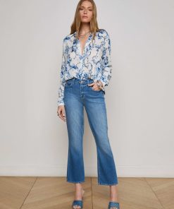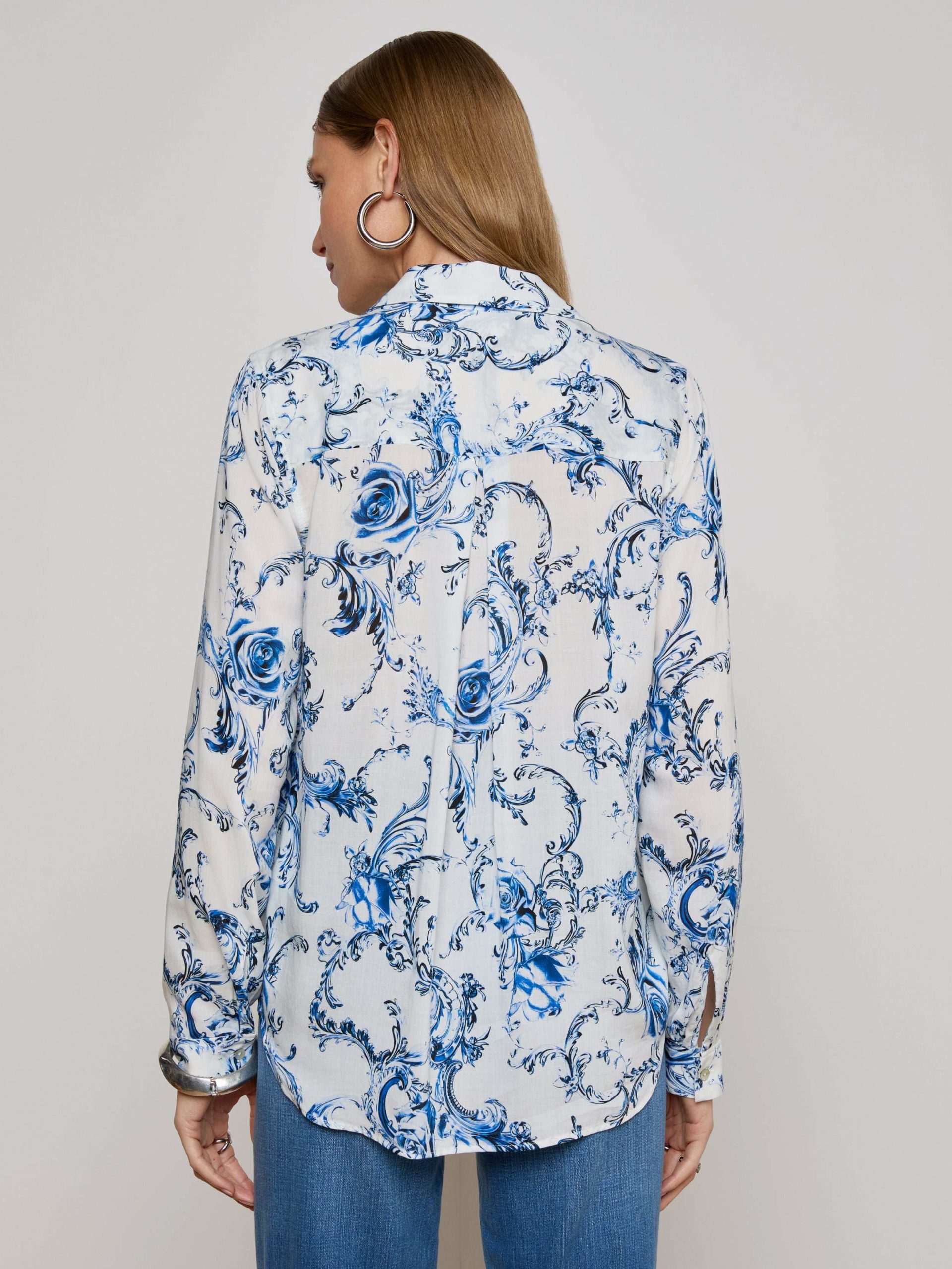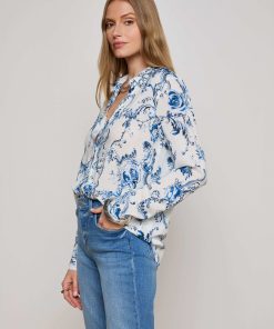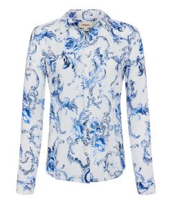 L’agence Women’s Holly Blouse | White & Blue Baroque Swirl