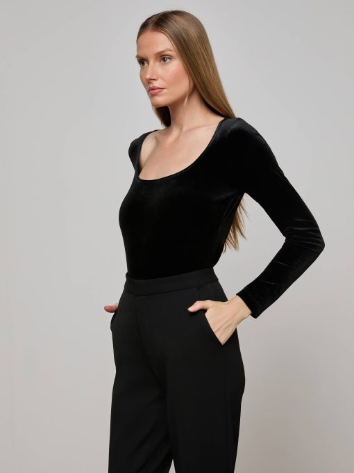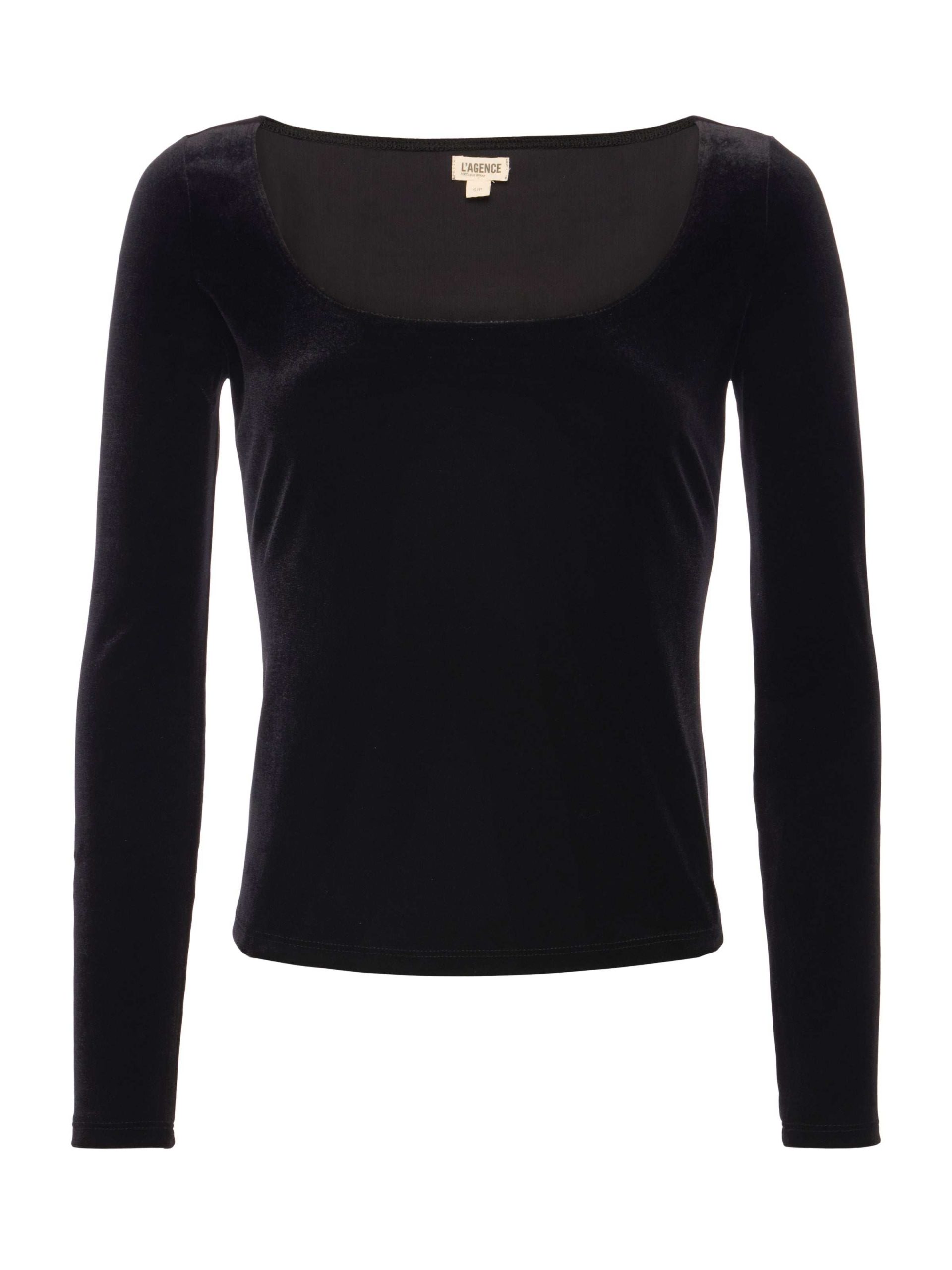 A ballet-inspired wide U-neck adds understated elegance to the Jelena top.
