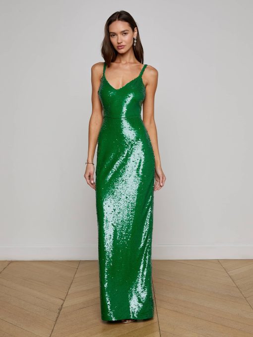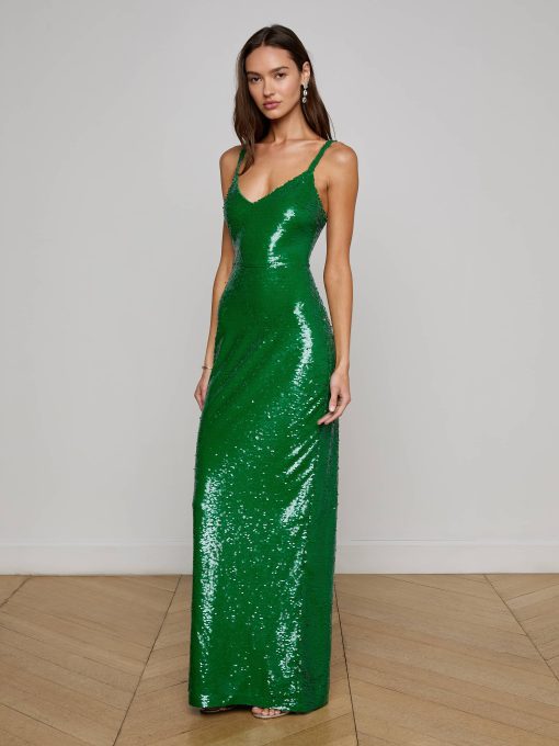 When you wear the Karma dress, good things are bound to come your way. With emerald green allover sequins, it shimmers with a liquid-like sheen. A structured bodice flatters the figure, adding to its wow-factor and a high back slit allows for ease of movement. Perfect for making an impression.