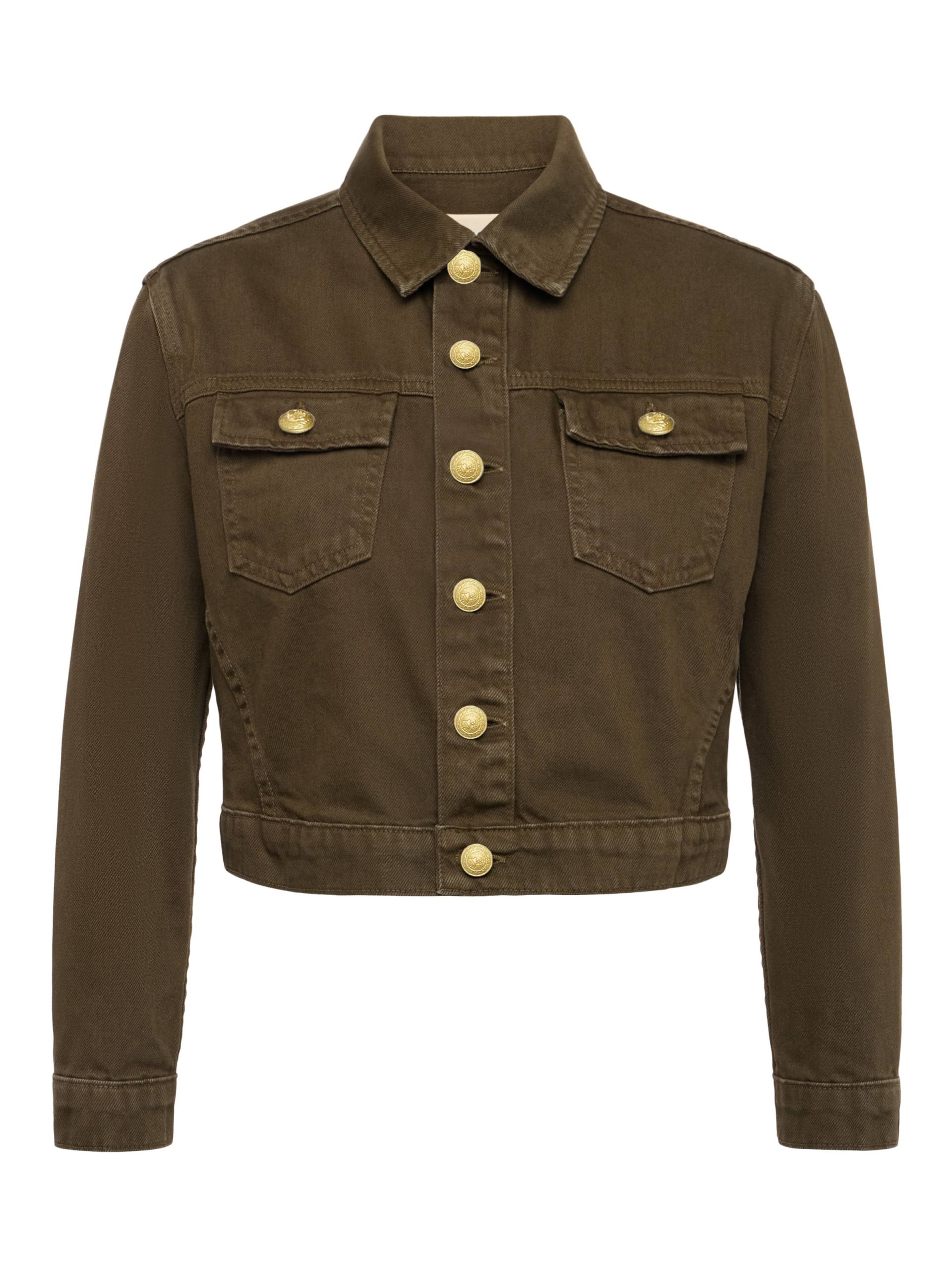 The iconic jean jacket reimagined in a clean cropped cut. Now in pine green.