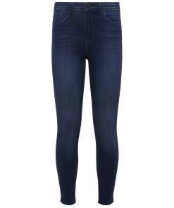 Our signature high-rise skinny jean crafted from premium, luxurious stretch denim. Tonal stitching and matte black button closure blend into the saturated navy denim for a seamless effect. Tapered leg hugs from hip to ankle, while the contoured waistband defines and slims the natural waist. High-recovery fabric holds its shape, smoothing the silhouette without sacrificing comfort. Style No. 2294DXL-MRBL