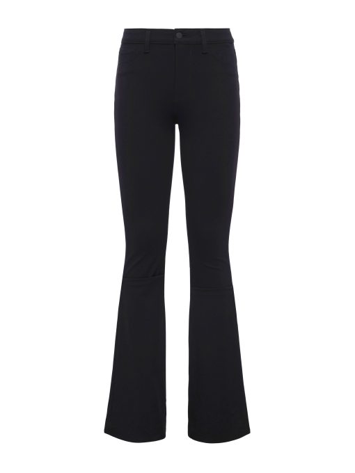 A flatteringly proportioned flare-leg pant in true-black ponte. Contoured waistband fits securely at the natural waist, smoothing and slimming the figure, then hugs hip, thigh, and knee before releasing into a cool flared hem. Classic five-pocket construction and front zip fly closure. Style No. 2707APT-BLAC