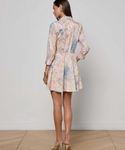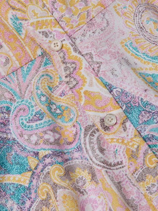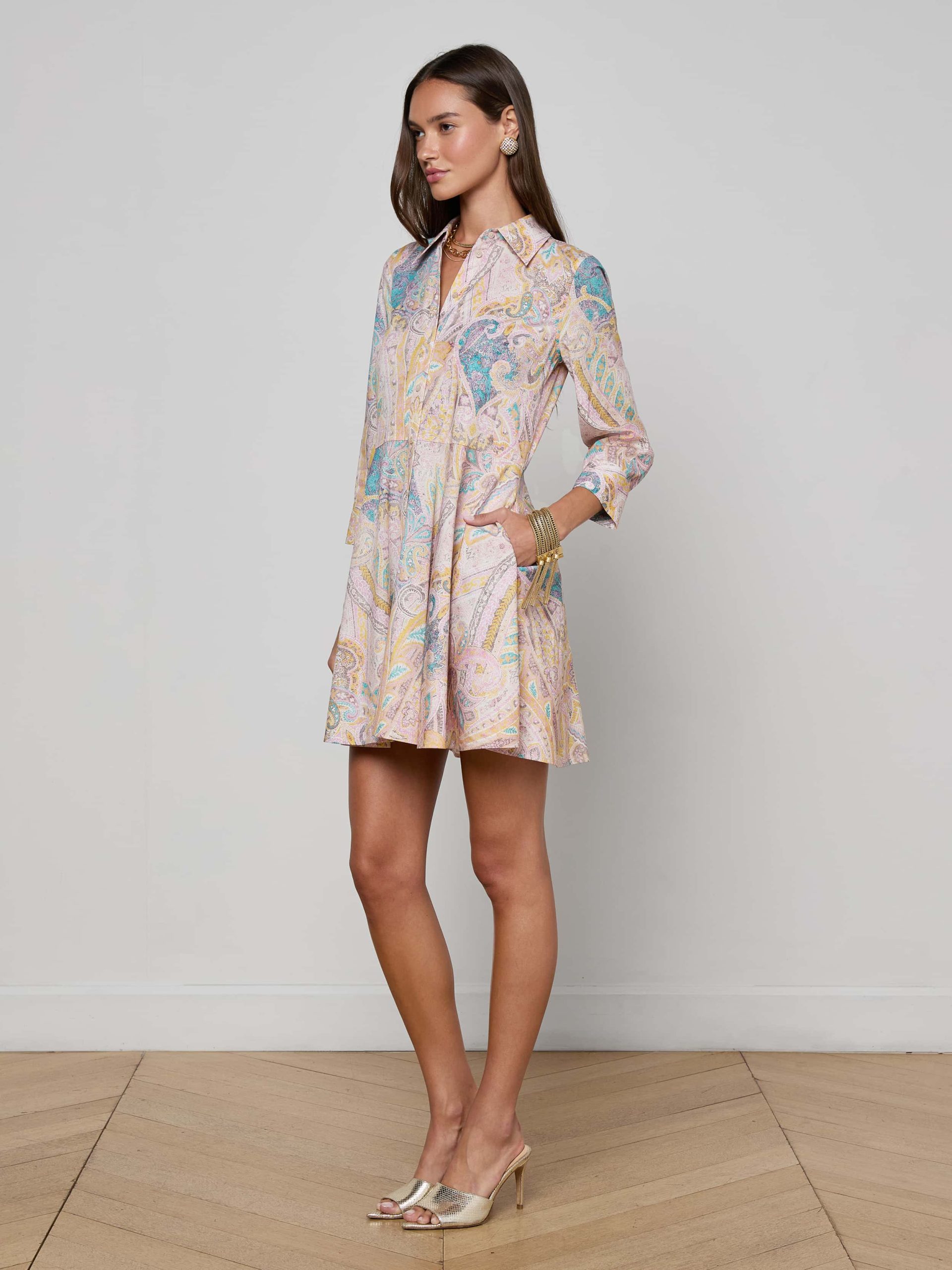The perfect little day dress, crafted from crisp cotton-blend poplin and finished with a full circle skirt. Now in a sunwashed paisley print.