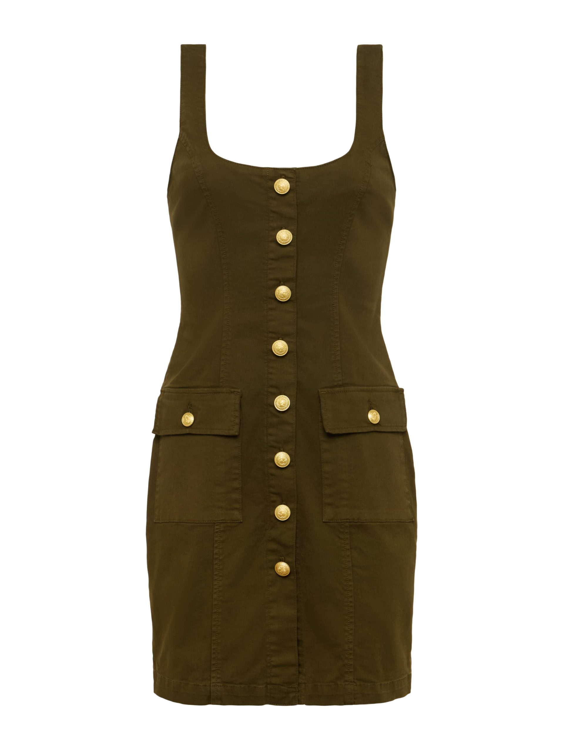 The structured fit of our bestselling mini dress shapes and sculpts the figure. Now in pine green denim.