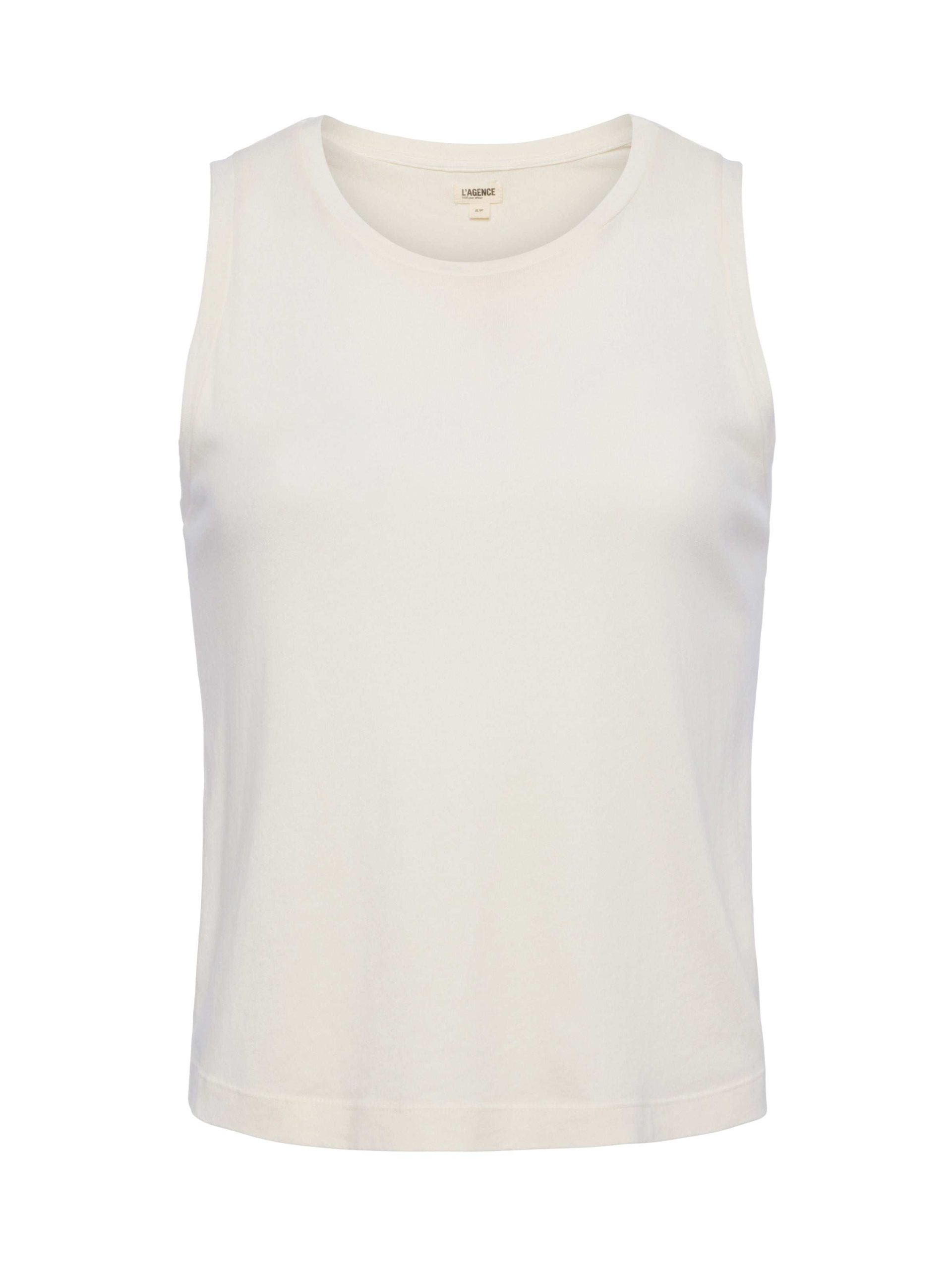 A closet staple and ideal base layer. Our essential sleeveless tank is back in light pearl.