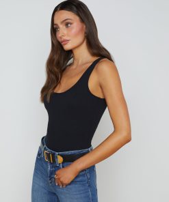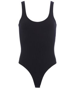 A super-sexy scoopneck bodysuit in true black. Double scoopneck design in a silky soft premium ribbed knit hugs the figure beautifully, from top to bottom. Cheeky silhouette fastens with a two-snap gusset, creating a smooth, line-free look. Style No. 5738CMR-BLAC