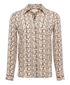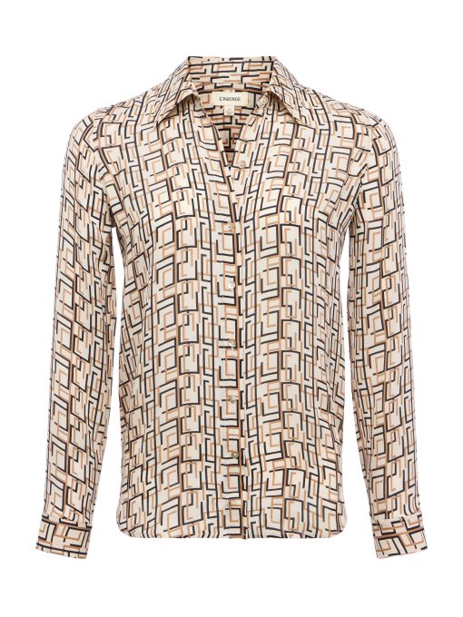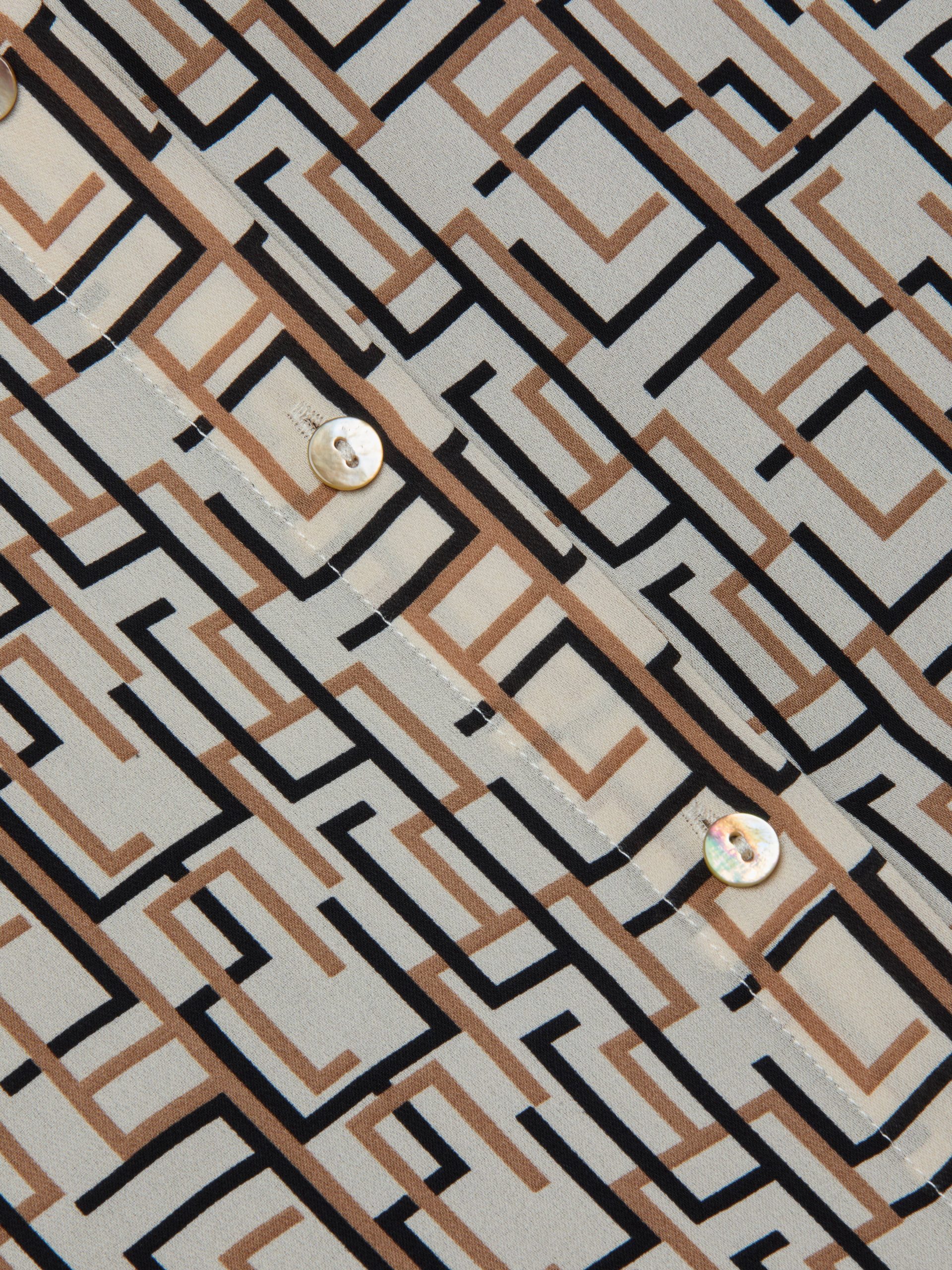 Our classic long-sleeve silk button down. This relaxed fit essential is now back in a retro-inspired geometric print.