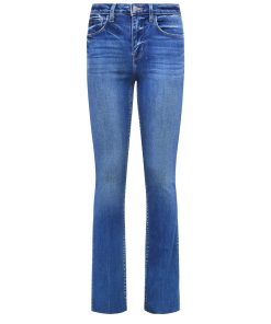 A classic high-rise jean in medium-blue premium stretch denim that includes REPREVE, a sustainable, high-performance recycled fiber. Meticulous sanding on hip, thigh, and seat enhance fabric’s character. With a flattering contoured waistband, style is fitted through hip and thigh before falling in a straight leg to a clean raw hem. Includes five-pocket construction and front zip fly closure. This style is thoughtfully designed with a raw hem for easy alterations. Style No. 2649BLDR-CMBR