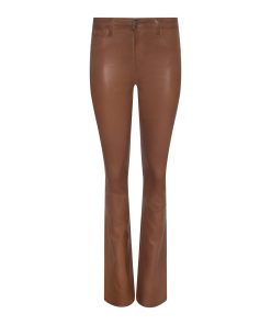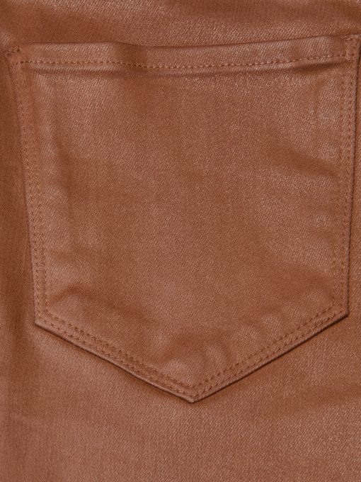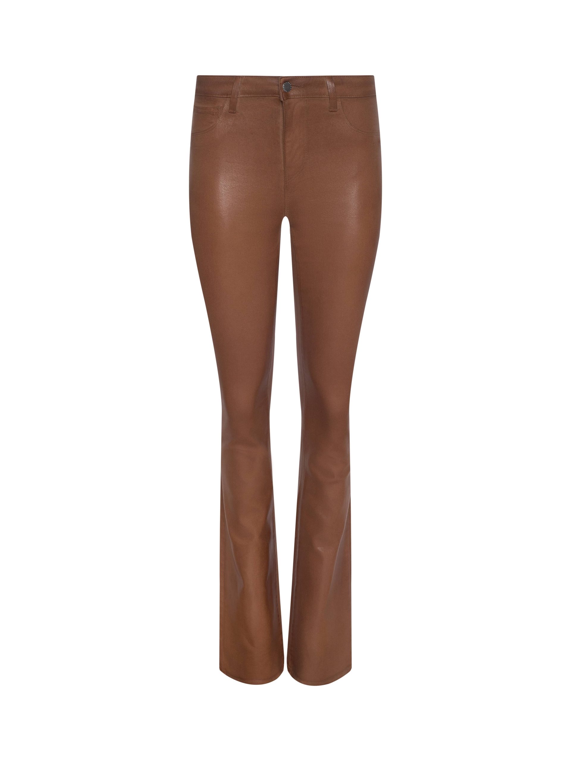 A sleek, slim bootcut, fitted through the hips and knee. A contoured waistband securely hugs the natural waist without gaping. Now in our cognac leather-alternative coated denim.