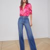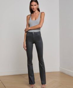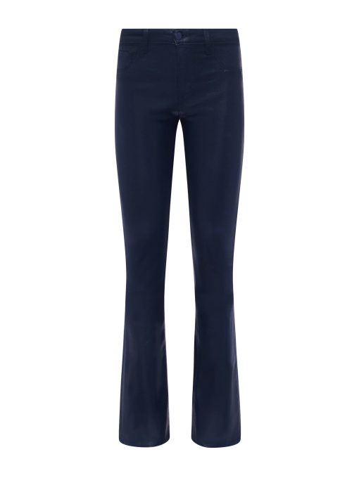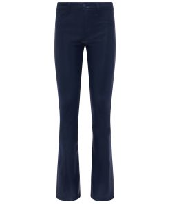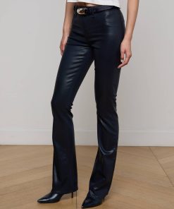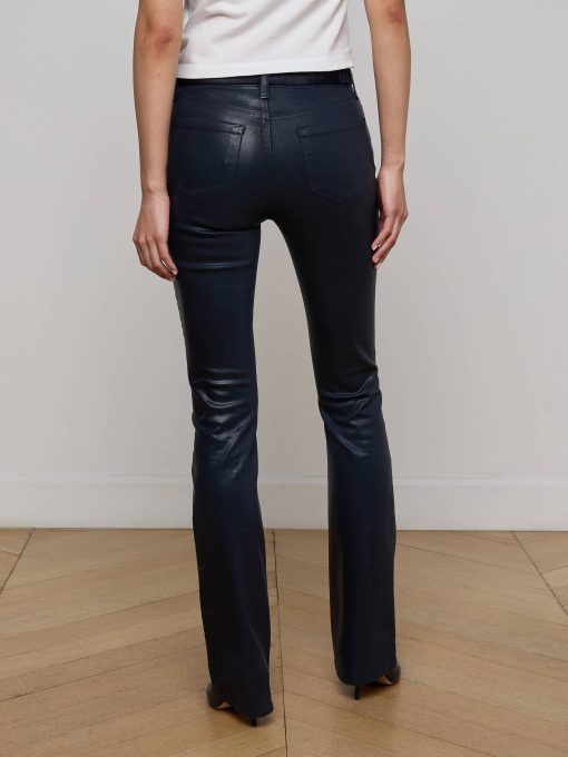 A sleek, slim bootcut, fitted through the hips and knee. A contoured waistband securely hugs the natural waist without gaping. Now in a dark midnight leather-alternative coated denim.