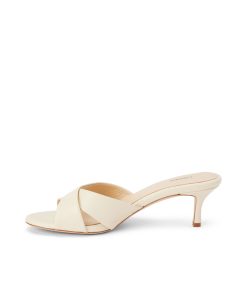 She’s ultra-pretty and effortless to wear. Our Aveline rounded-toe sandal features a backless design that slips on and off in seconds. The supple off white leather crisscross vamp securely hugs the foot and the kitten heel offer sophisticated comfort. Dress up your everyday denim look or pair with your prettiest dress for a night out. Style No. 9TILA1321-ECLE