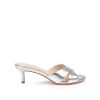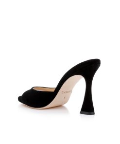 Our signature open-toe mule has been updated with a subtly flared heel. Now in supple black suede.