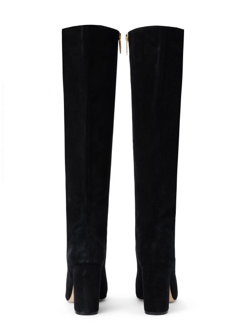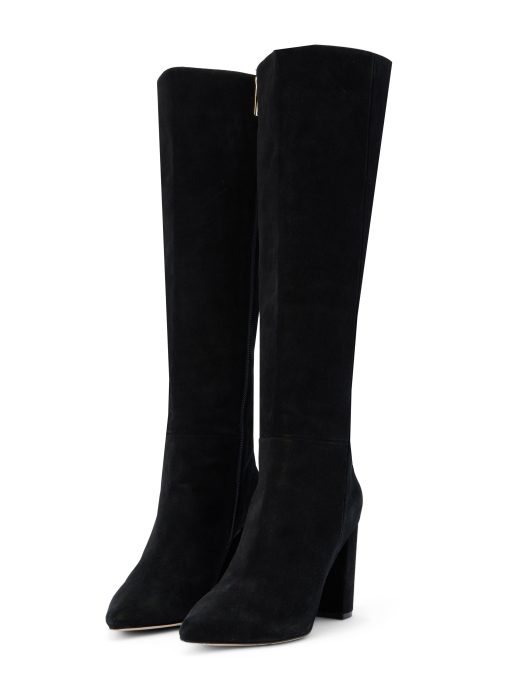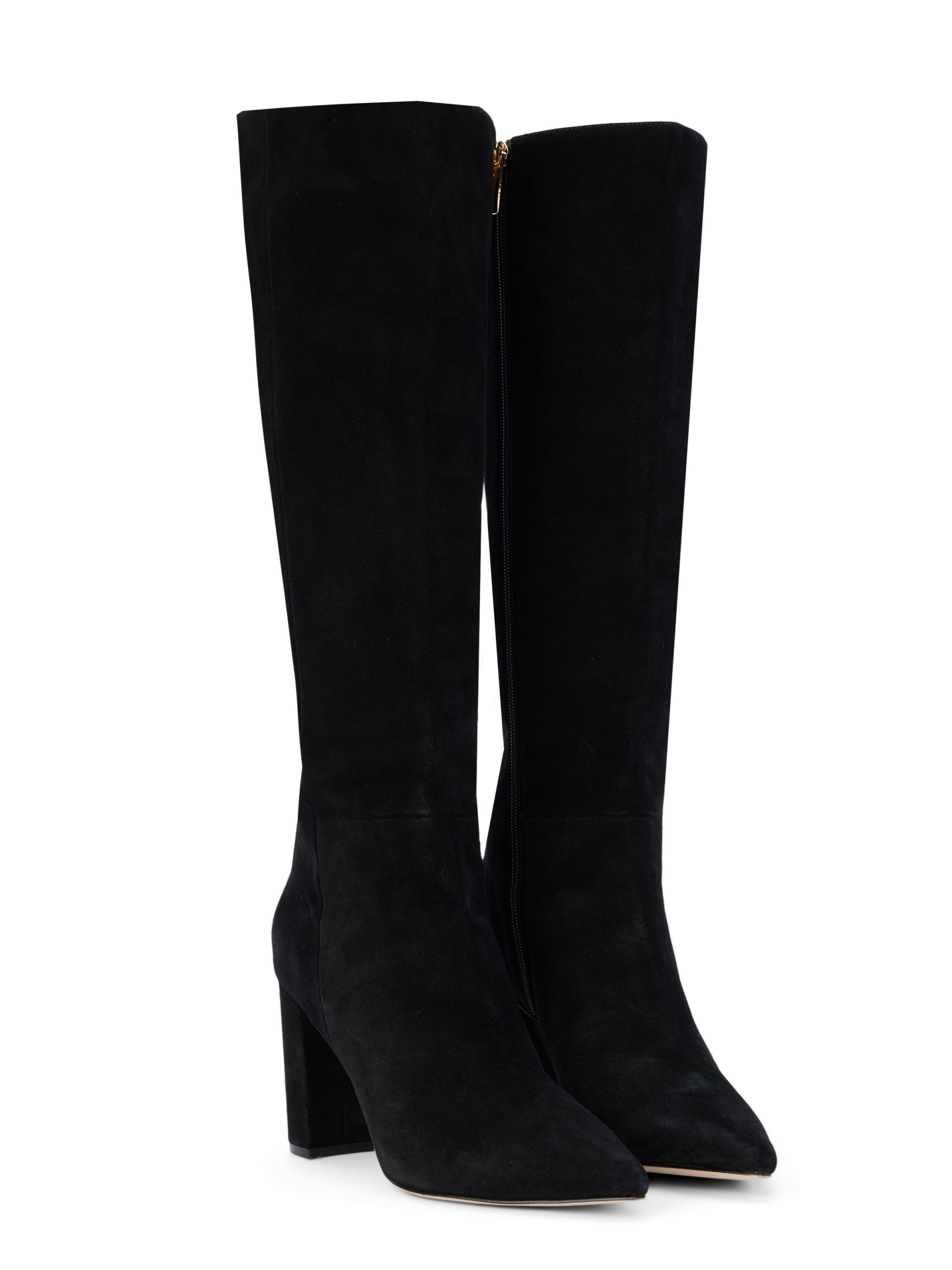 The quintessential knee-high pointed-toe boot in black suede. Impeccably crafted suede molds to flatter the foot and calf in an elegant, timeless silhouette. Wearable block high heel is ultra-versatile, pairing effortlessly with denim, leggings or skirts. Zip closure. 100% Suede. Style No. 9TILA1253-BLSU