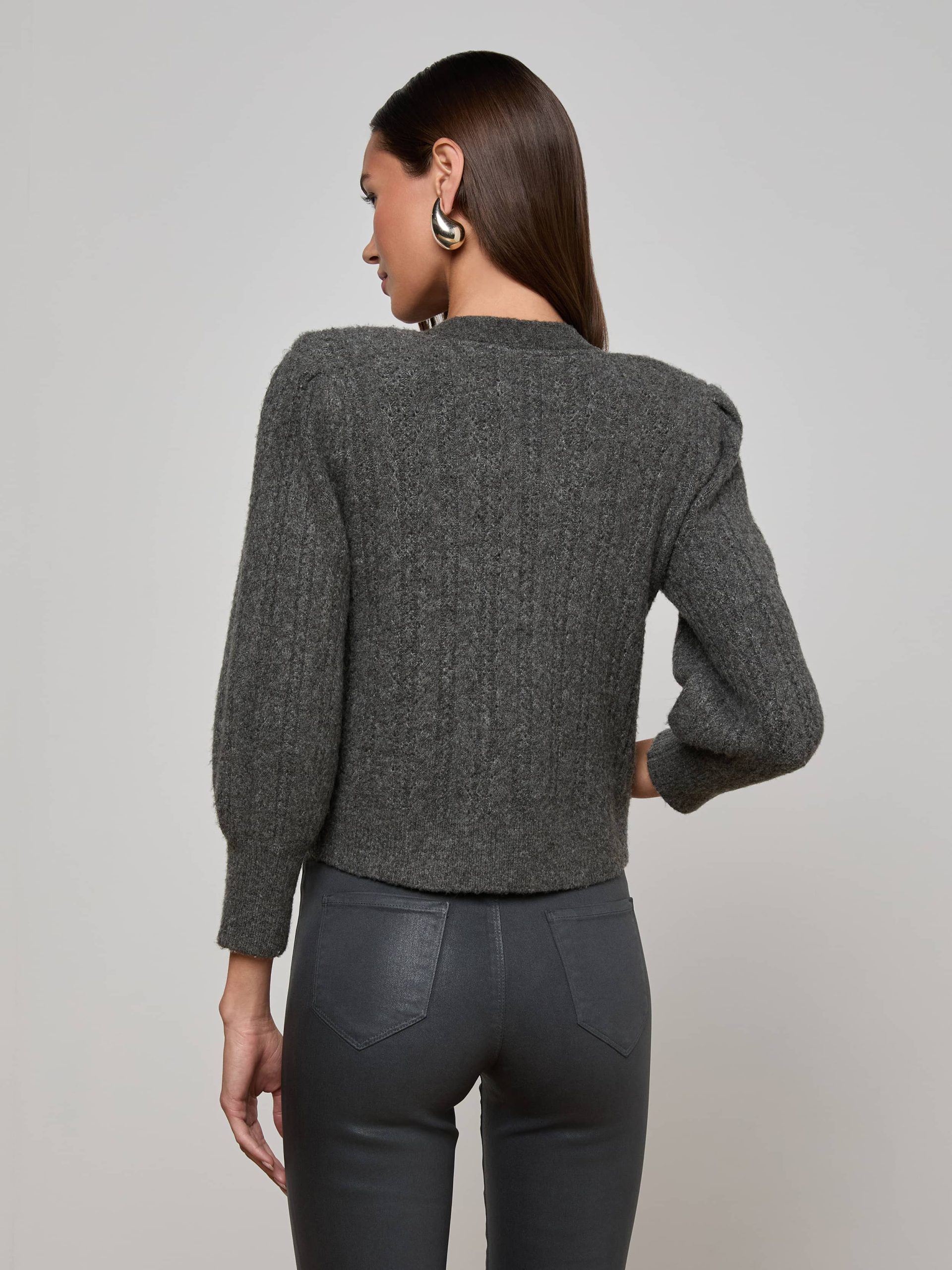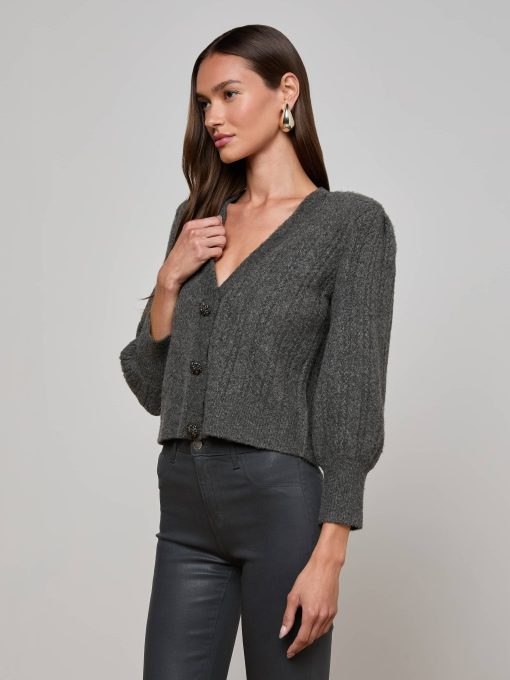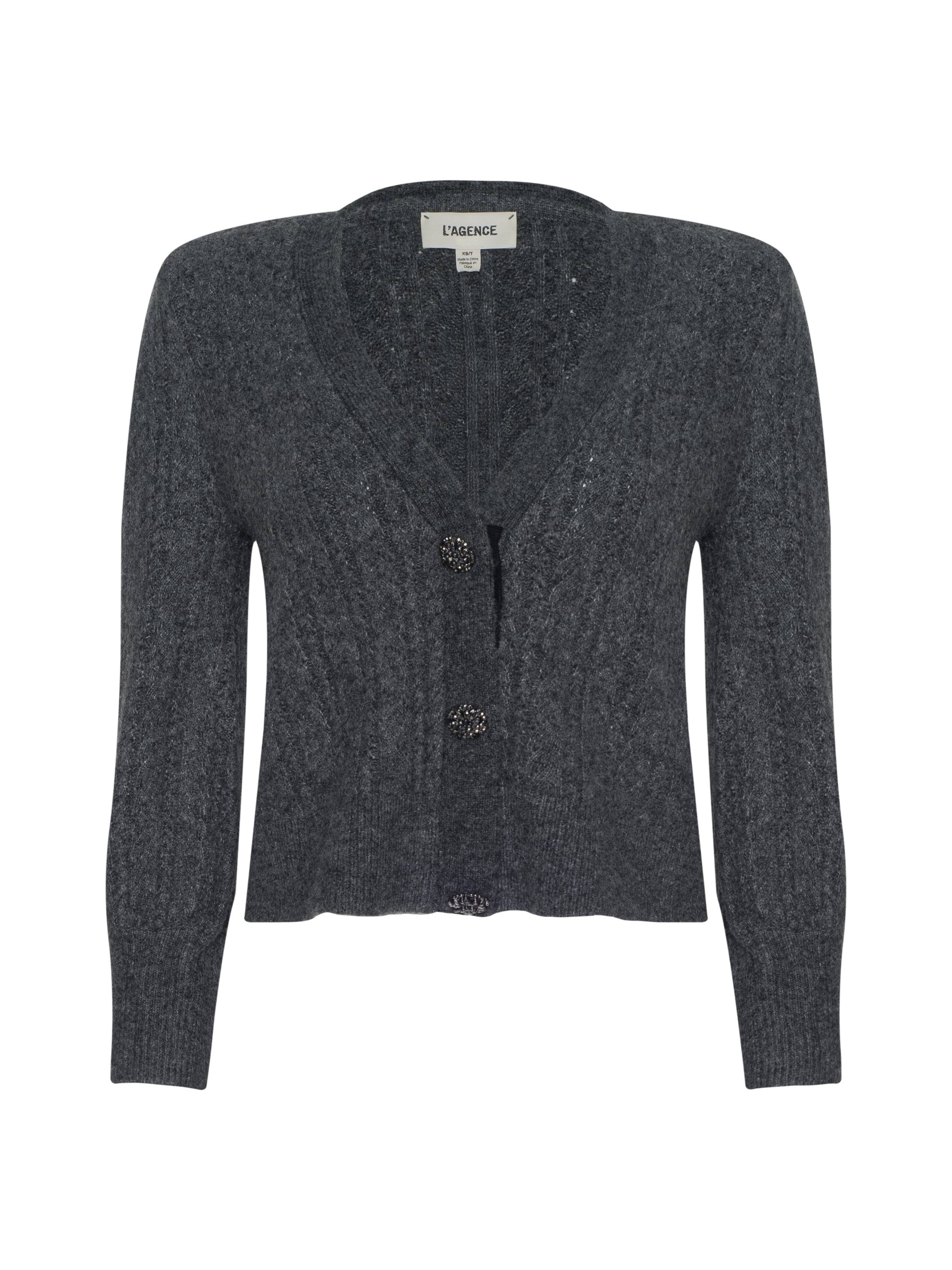 Cozy, chic, and easy. The Tallula is everything you want in a cardigan—plus, jeweled buttons and strong shoulders add an extra glam factor. Wear it as a top or layer. Now back in charcoal.