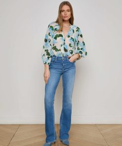 L’agence Women’s Teagan Blouse | Ivory & Light Blue Hydrangea