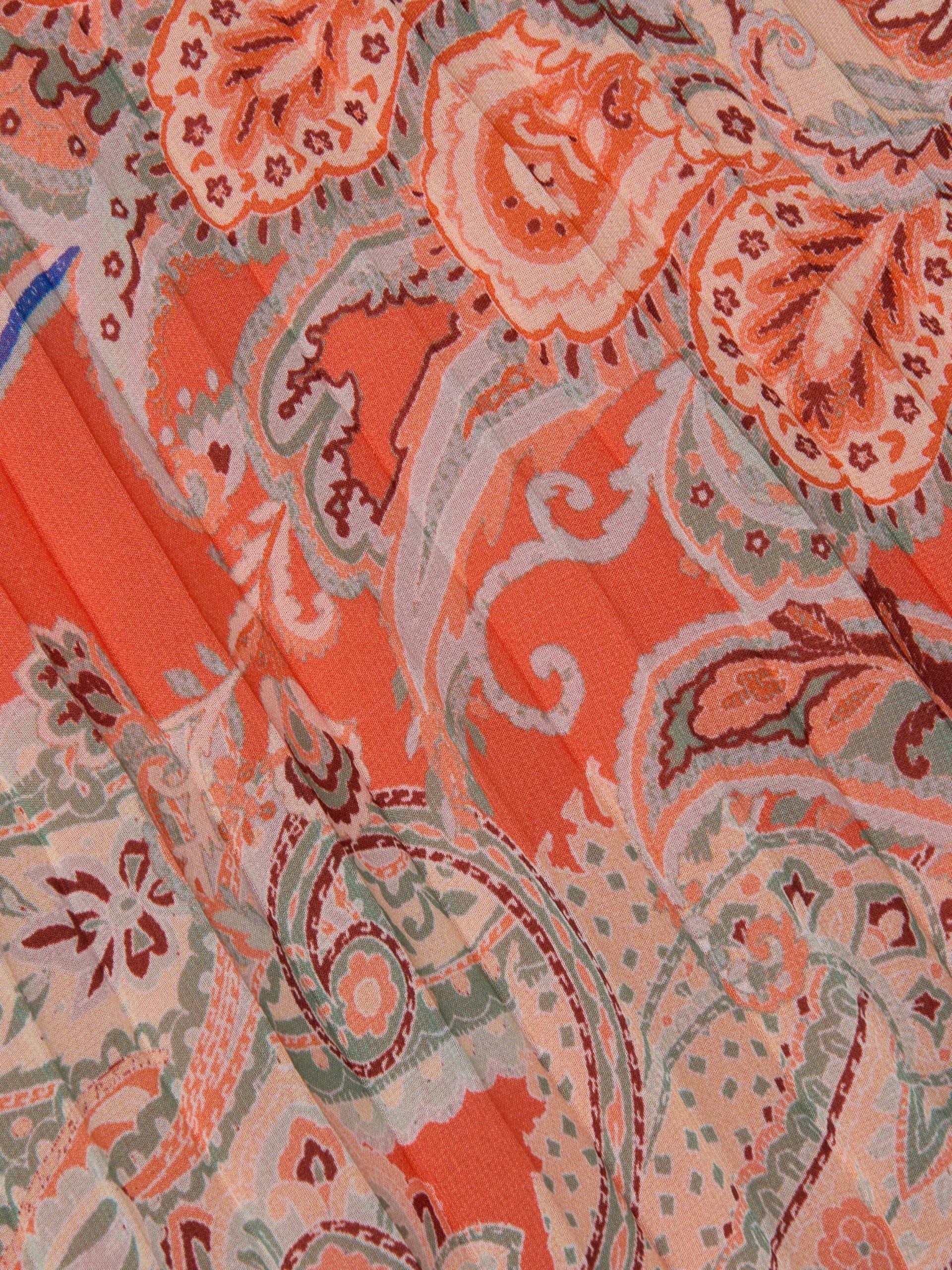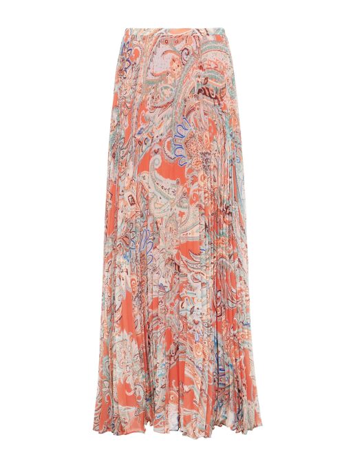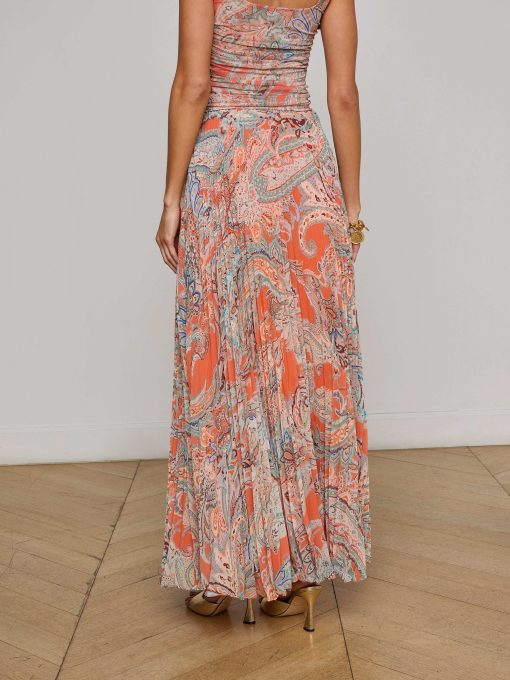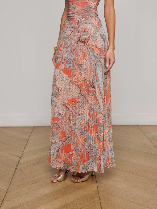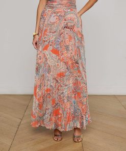 The Torin is a pleated maxi skirt that showcases a flowing silhouette and traditional paisley print in sun-washed tones. Designed for easy movement and all-day comfort, it’s a go-to for effortless style.