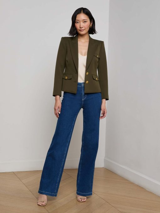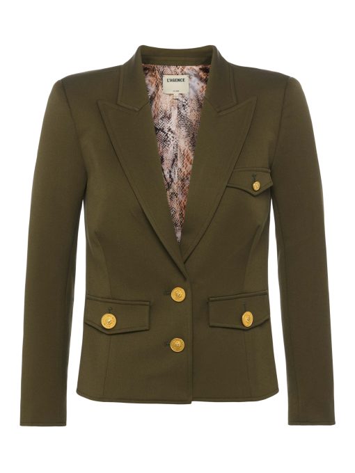 The essential single-breasted blazer, tailored to perfection. Designed with structured shoulders and a close, fitted cut, the Wylla blazer is a must-have for all seasons. Now in pine green with a snake print lining.