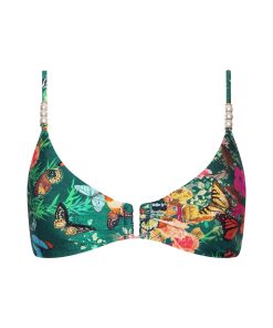L’agence Women’s Yazmin Bikini Top | Bottle Green Multi Charonda Butterfly