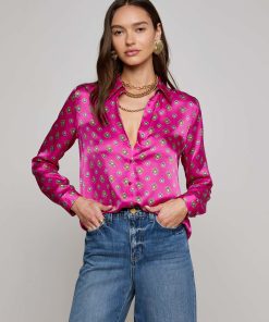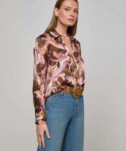 L’agence Women’s Tyler Silk Blouse | Tan Multi Western Toile